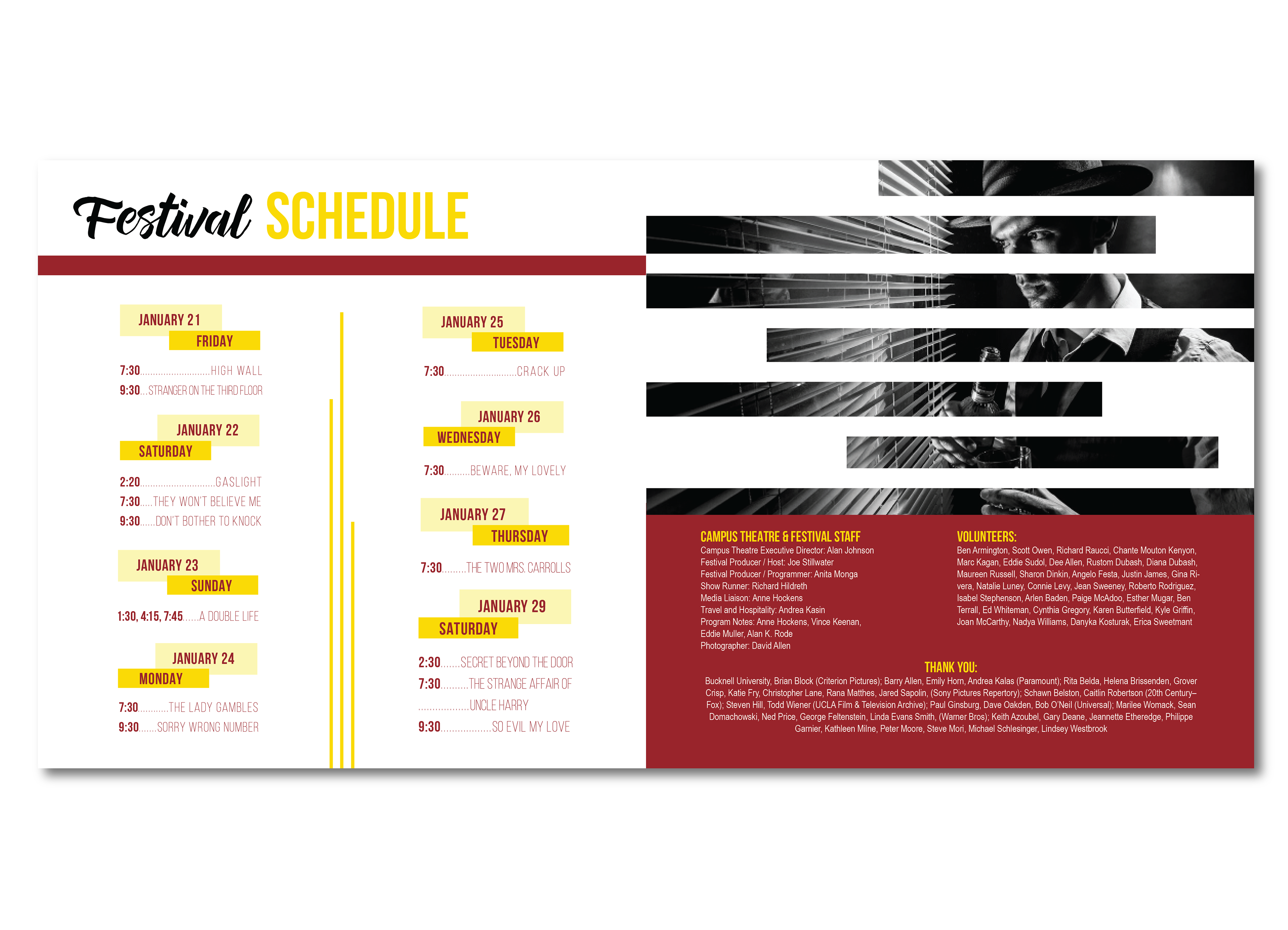 Objective: Create a booklet for the Campus Theatre's Film Noir Festival using given copy.